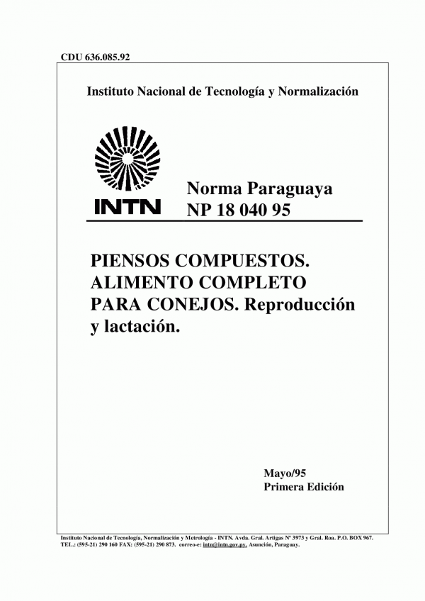 Esta Norma establece los requisitos que debe cumplir un alimento completo para conejos reproductores y hembras en lactación.